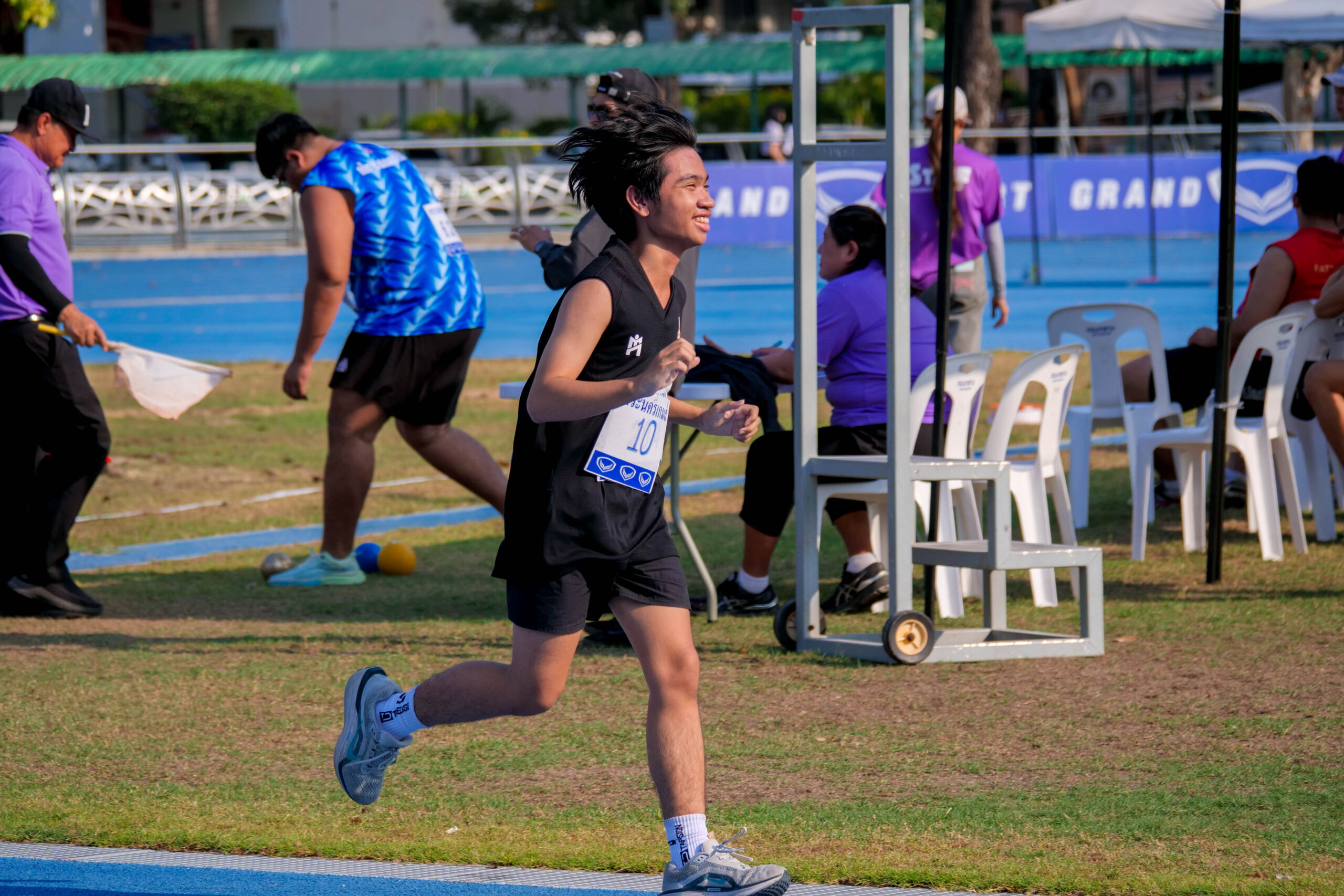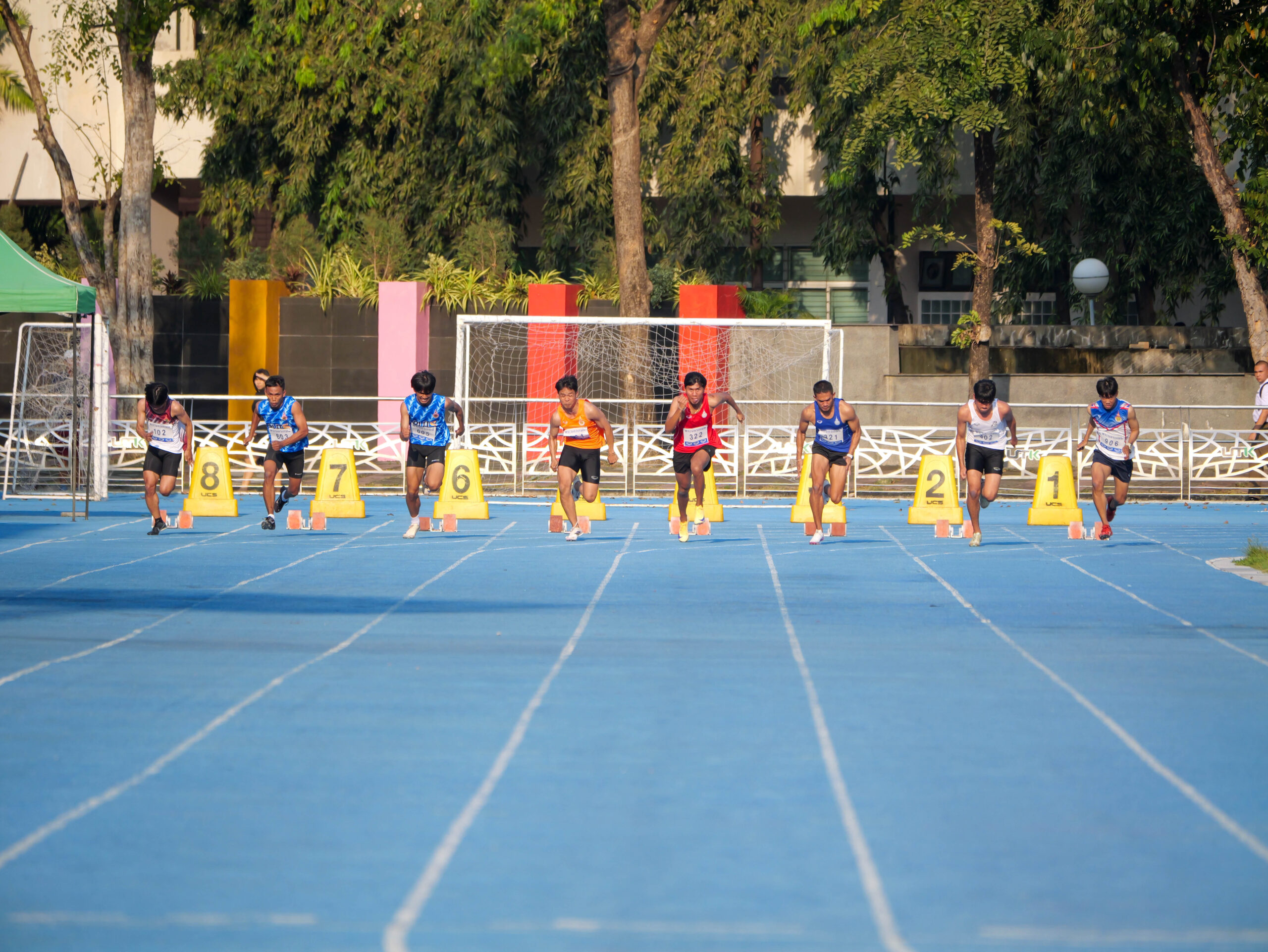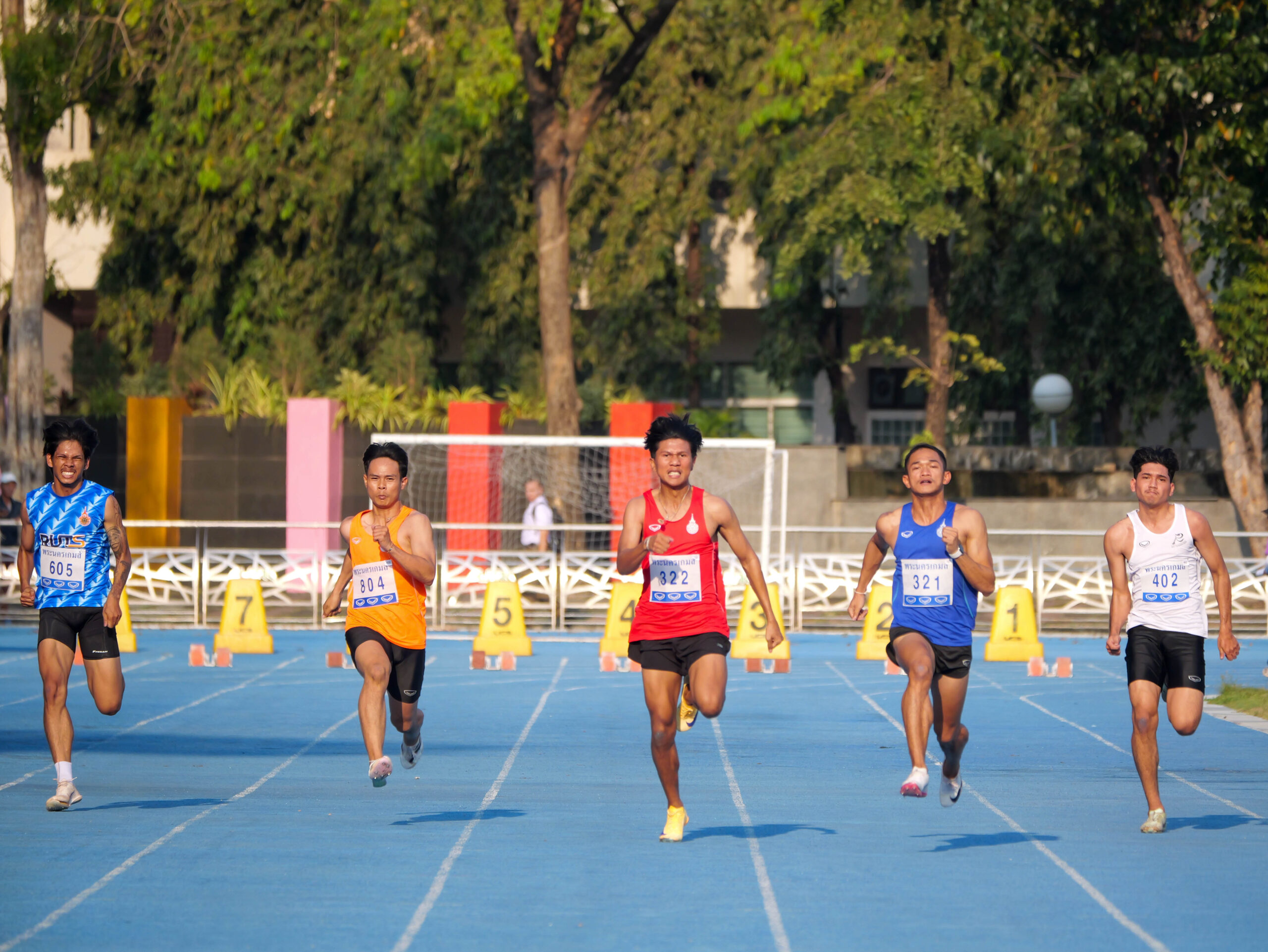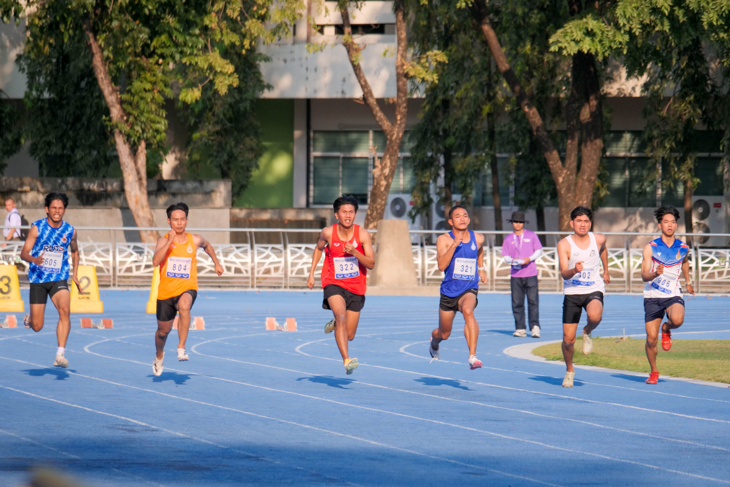 การแข่งขันกรีฑา รายการวิ่ง 100 เมตร ชาย สร้างความตื่นเต้นให้กับกองเชียร์ เมื่อ ธวัชชัย หีมเอียด จากมหาวิทยาลัยเทคโนโลยีราชมงคลธัญบุรี วิ่งเข้าเส้นชัยเป็นอันดับ 1 ด้วยเวลา 10.73 วินาที คว้าเหรียญทองไปครอง พร้อมทำลายสถิติการแข่งขัน เดิมของตนเอง ที่เคยทำไว้ 10.77 วินาที ในการแข่งขัน “ศรีวิชัยเกมส์” ครั้งที่ 37 ได้สำเร็จ แสดงให้เห็นถึงพัฒนาการและความแข็งแกร่งอย่างต่อเนื่อง ในขณะที่เหรียญเงินตกเป็นของ ธีรพงศ์ อำนวย จาก มทร.ธัญบุรี ด้วยเวลา 10.87 วินาที ส่วนเหรียญทองแดงเป็นของ เชาวพิศ คำบัว จาก มทร.อีสาน ทำเวลา 11.28 วินาที