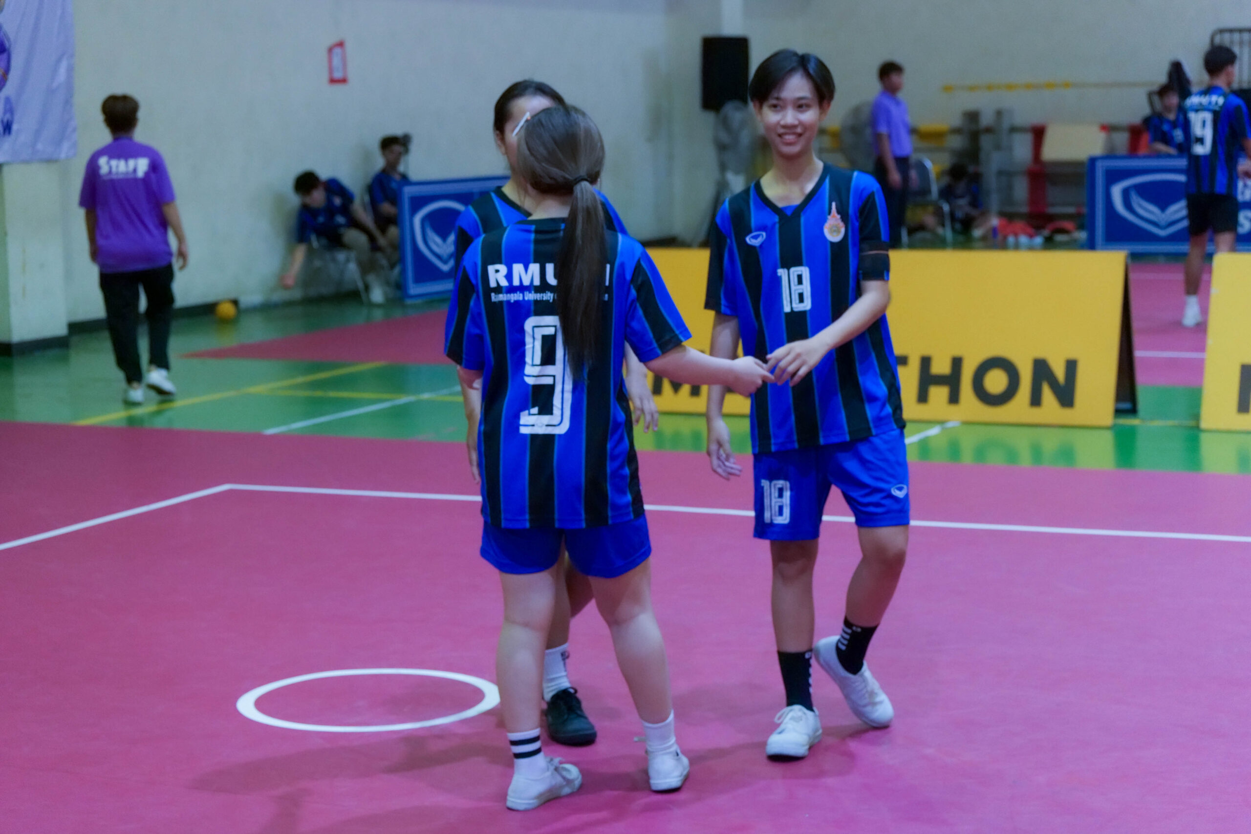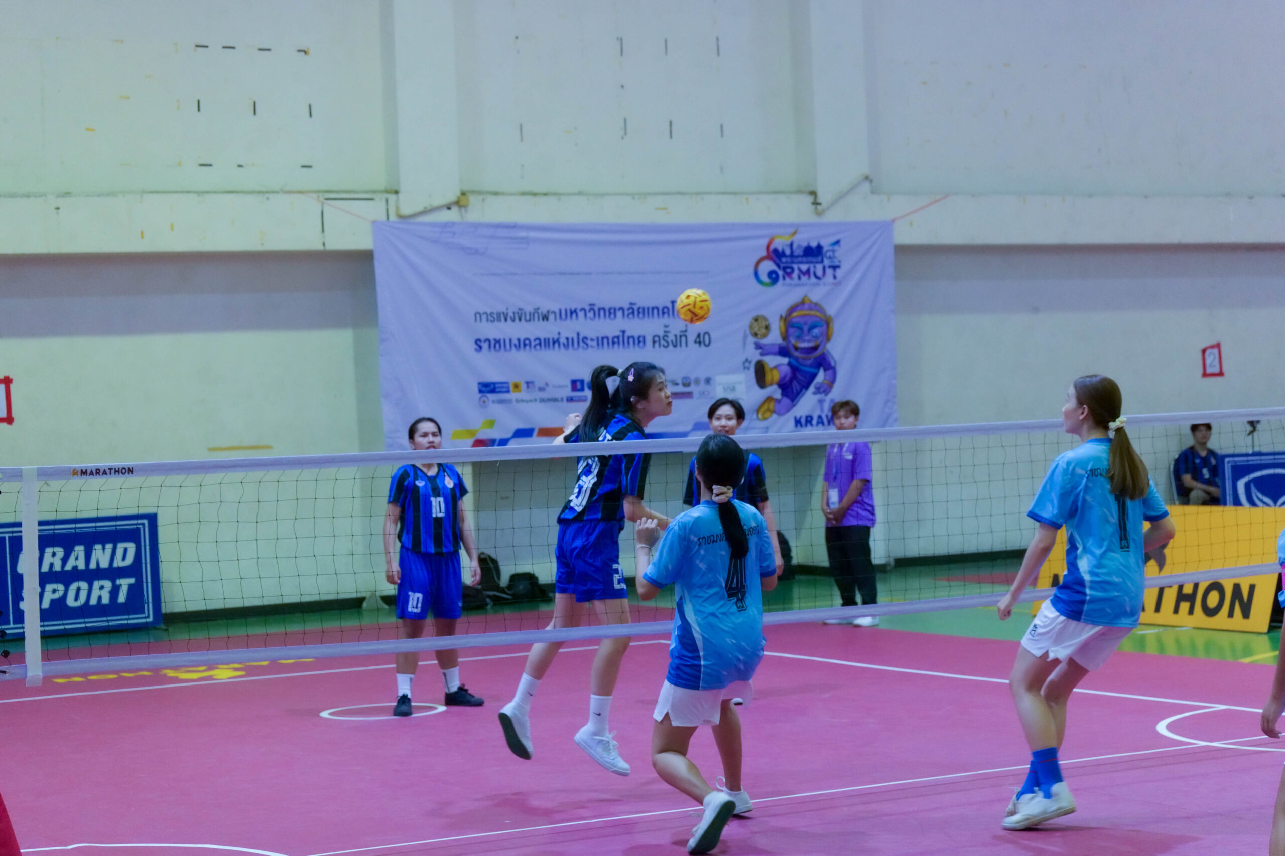 การแข่งขันเซปักตะกร้อ (เดี่ยวหญิง) ในมหกรรมกีฬามหาวิทยาลัยเทคโนโลยีราชมงคลแห่งประเทศไทย ครั้งที่ 40 เมื่อวันที่ 14 กุมภาพันธ์ 2569 ณ สนามกีฬา มทร.พระนคร รอบชิงชนะเลิศระหว่าง มทร.ธัญบุรี เสื้อสีแดง พบกับ มทร.รัตนโกสินทร์เสื้อสีดำ ท่ามกลางบรรยากาศการแข่งขันที่เข้มข้นตั้งแต่ต้นเกม