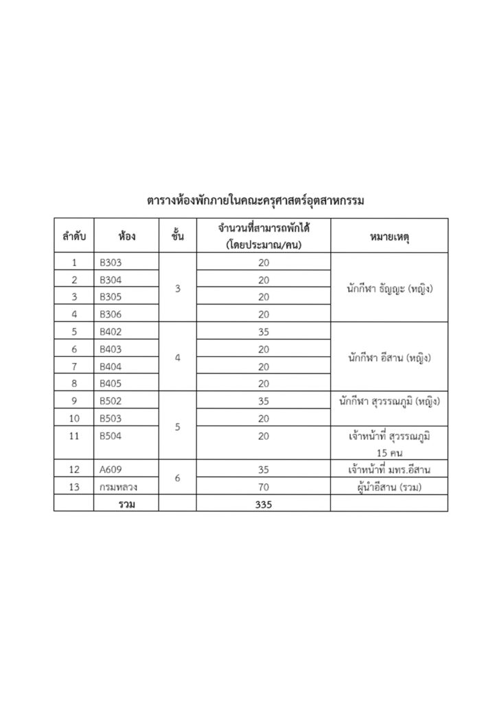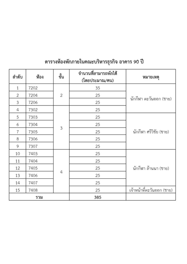 ที่พักนักกีฬา และผู้ที่เกี่ยวข้อง